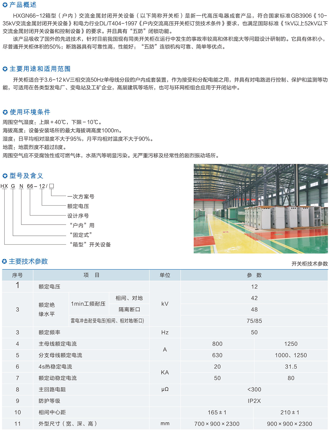 HXGN66-12箱型固定式(户内)交流金属封闭开关设备