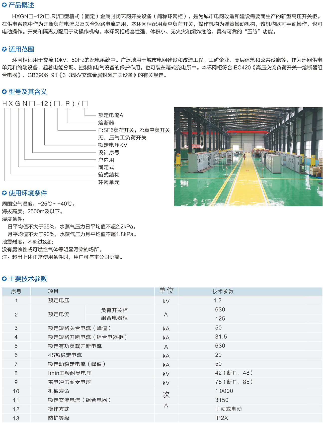 HXGN口-12(口.R)/口型箱式(固定)金属封闭环网开关设备